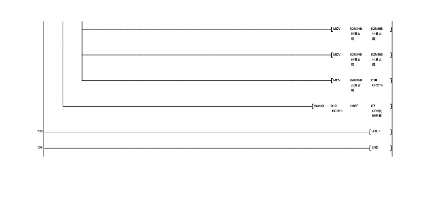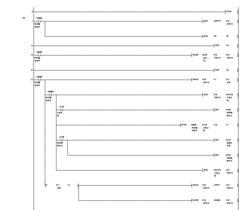 個人親測OK的三菱PLC通過RS485通信的CRC16計算程序,大家多多發表意見和建議,三菱FX3U系列PLC因自帶有CRC指令,可以不使用此段校驗程序(使用也是可以正常通信的),FX3G/2N/1N等PLC均可使用。