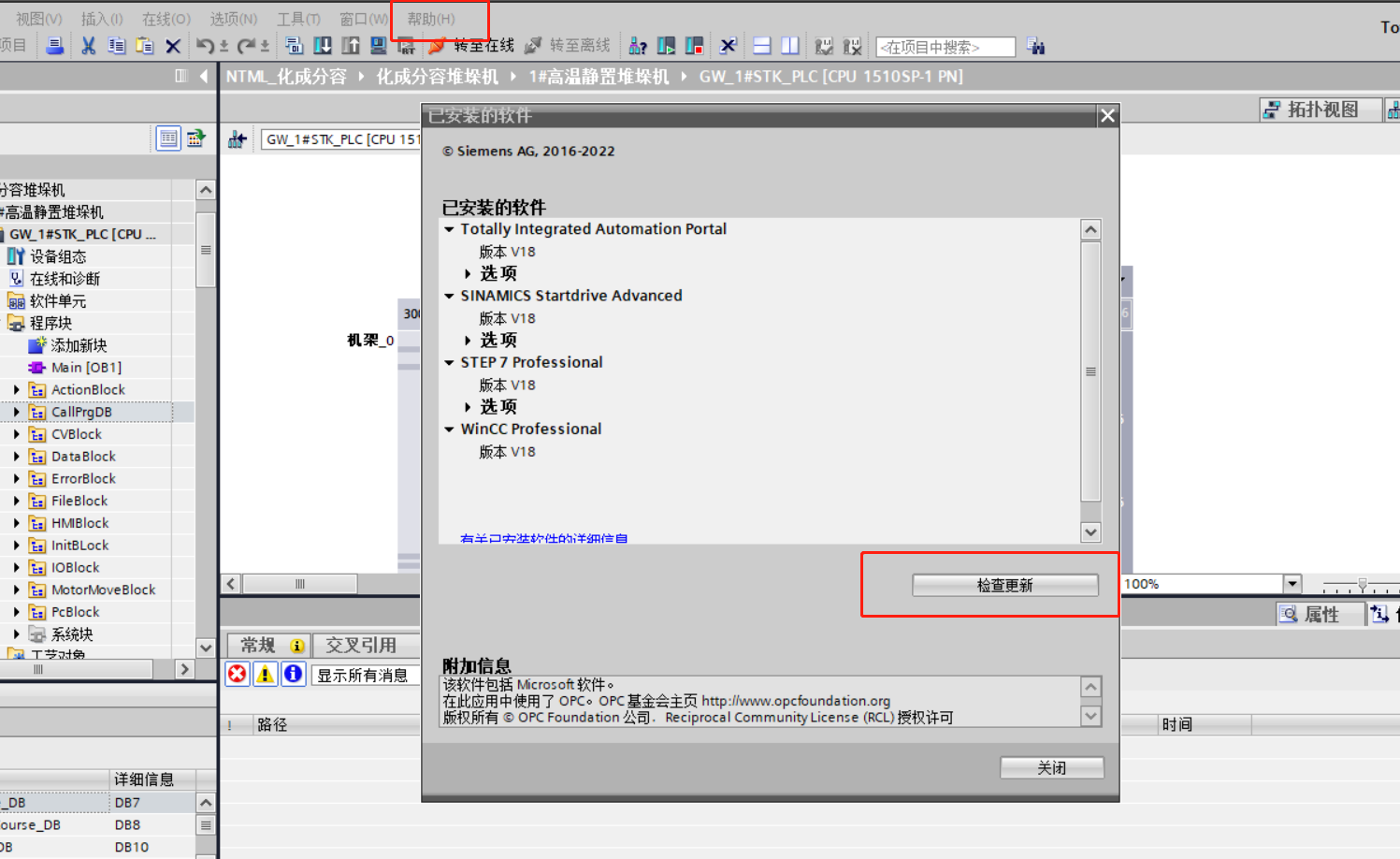 通過博圖軟件檢查:盡管自動更新功能可能不直接可用,用戶仍可以嘗試在博圖軟件的“幫助”菜單中單擊“已安裝的軟件”,然后單擊“檢查更新”來查看是否有可用的更新23。