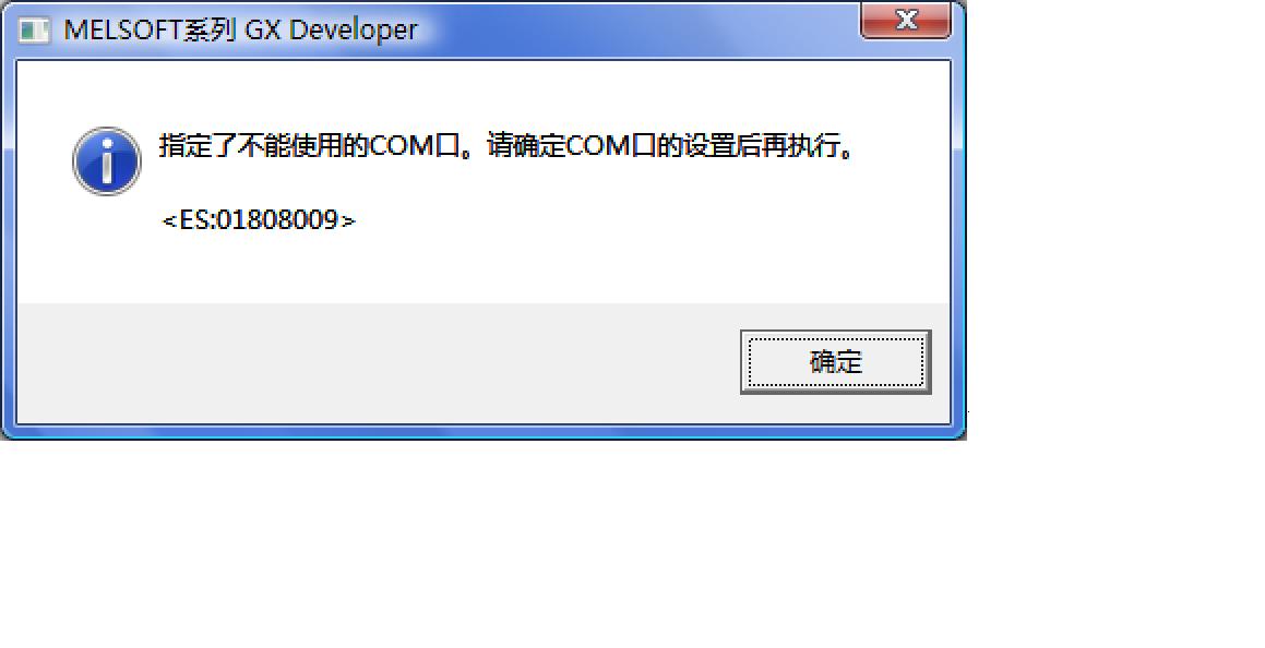 當 在線→PLC讀取  時提示:“指定了不能使用的COM口.請確定COM口的設置后再執行.  <ES:01808009>  ”。