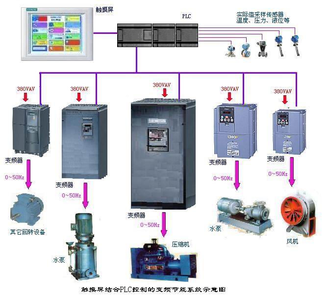 13維修技術人員脾氣一定要好,因為我們是為一線生產服務。氣大傷身哦。做技術低調點好,天外有天,人外有人,我是一名小學生,我要好好學習,天天向上。另做技術千萬不要保守,因為想學的人是擋不住的,不想學的你給他都沒用。另外附上觸摸屏結合PLC控制變頻器的節能系統示意圖