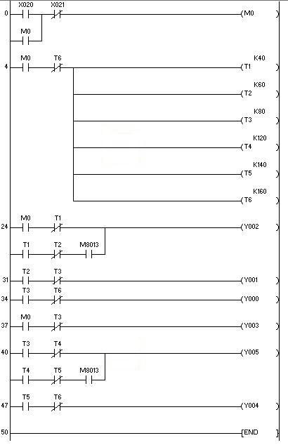 我初學PLC,看了一些例子,設計了一個PLC——“十字交通燈控制”,如下圖交通燈1,用學習軟件測試,可達到要求。而看了某教材中的“十字交通燈控制”(如圖交通燈2),比我的復雜多了。于是有點不自信:是不是我的設計有什么不妥,或不穩定之類?請專家和高手們幫我診斷一下!
