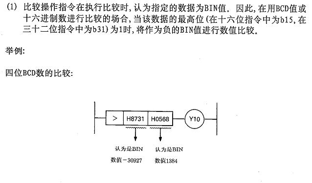 因為題目提到在用BCD或十六進制比較時,最高位(在這里是b15)為1時,將作為負的BCD值進行比較