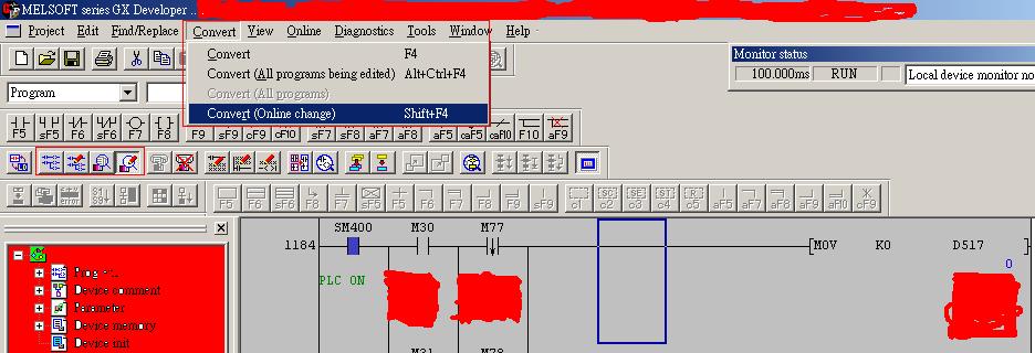 F2為“Write Mode”可進行修改程序,修改完成后一般用Shift+F4鍵就可以在線寫入。