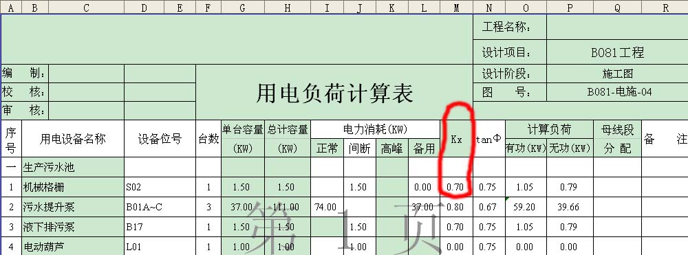 用電設備的額定功率Pe是指這個設備的輸出容量,它與輸入容量之間有一個效率n1;用電設備不一定滿載工作,存在一個負荷系數Ks;用電設備組的全部設備并不同時運行,存在同時運行系數Kt;向用電設備供電的線路有損耗,存在線路效率n2。