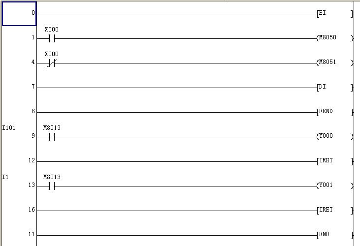 是不是程序錯了,或三菱軟件不能仿真中斷程序?