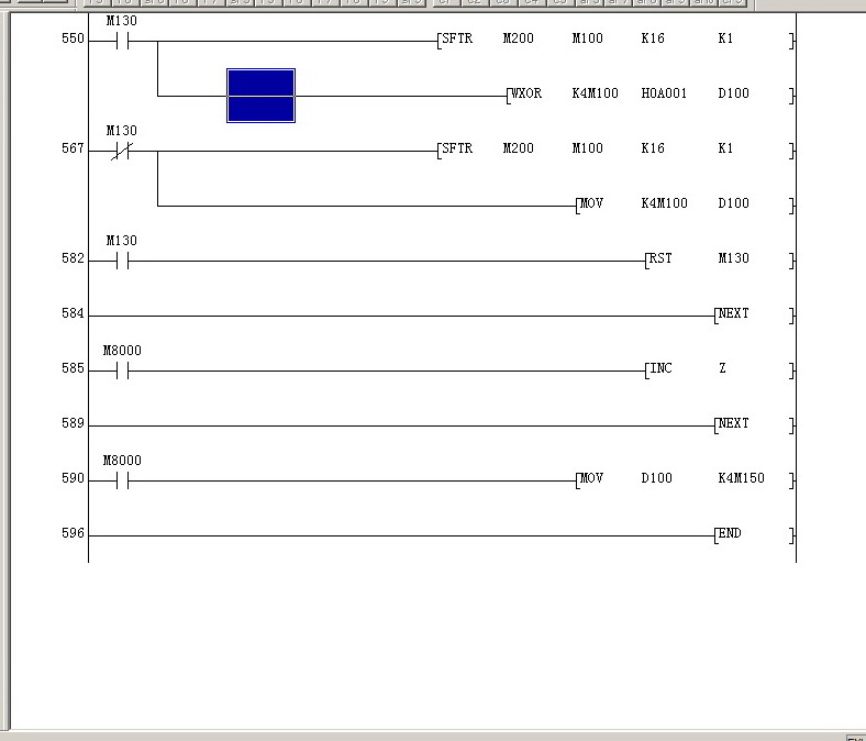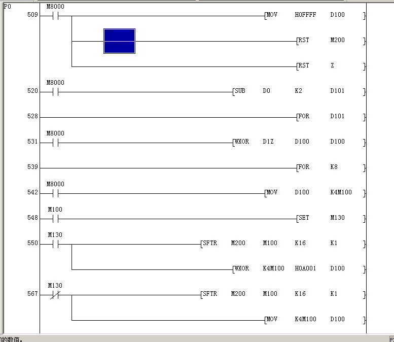 在模擬中,只要接通M51-M76的任一個接點,程序都會提示錯誤,提示“(1)FOR-NEXT的關系不正確。