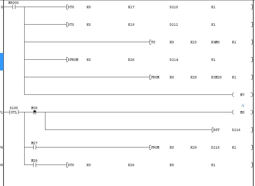 這兩條指令都是將濾波時(shí)間設(shè)置為0 。已盡快的獲取輸入信號(hào),避免PLC原來默認(rèn)的10ms 的延遲。(要注意的是隨著PLC型號(hào)的不同,該改動(dòng)僅對(duì)X0~X7或X0~X17有效)