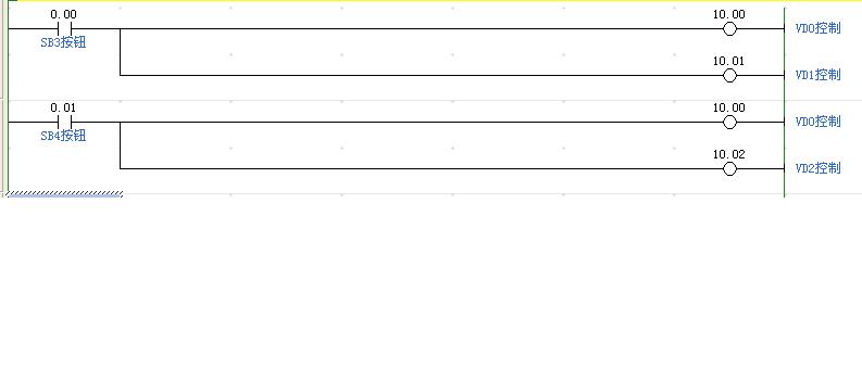 PLC控制電磁閥 SB3閉合 VD0 VD1得電 ;SB4閉合VD0 VD2得電