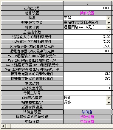 今天做實驗碰見一個傷腦筋的事, 我用 CC-LINK(型號:QJ65BT11) 鏈接6塊遠(yuǎn)程模塊 (型號:AJ65SBTB1-32DT 、 AJ65SBT-64AD、 AJ65SBT-64AD、AJ65SBTB1-32DT、AJ65SBT-64AD、AJ65SBT-64AD)站號是:主站是0 、遠(yuǎn)程模塊按上面的循序分別 1、2、3、4、5、6 CC-LINK 參數(shù)及站信息分別見圖1 、圖2 。