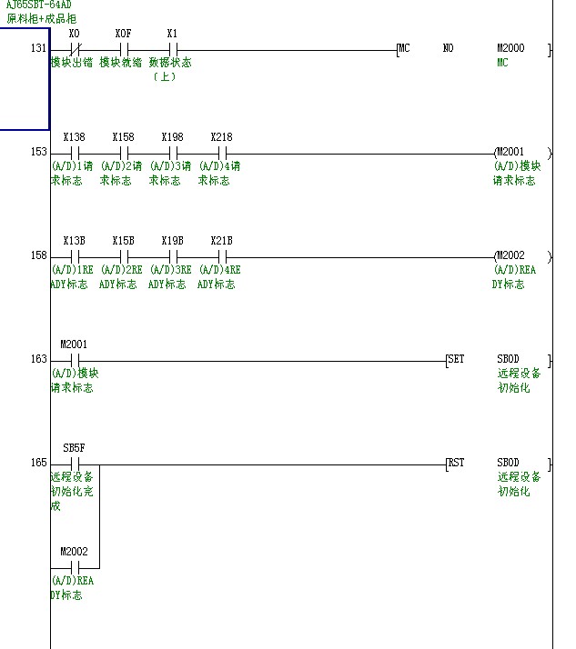 主站和CC-LINK 都沒報警,前面5塊模塊也正常(都有“請求標(biāo)志返回”分別是 X138、X158、 X198)最后一塊模塊就沒 “請求標(biāo)志返回”“X218” 程序就不能運行了。AD程序見 圖3。 我?guī)统绦蚝蛙浽峙浔泶虬俏淮髠b幫小弟看看問題出在那里。