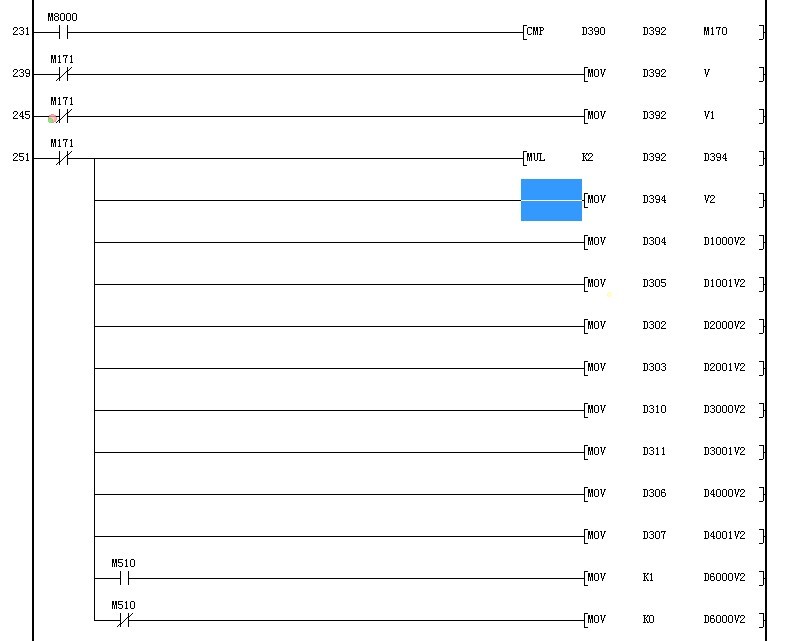 小弟是個三菱PLC初學者,現在碰到一段程序怎么看都看不懂,是關于變址寄存器V的使用的,麻煩大家幫我解釋下這段程序的意思,謝謝大家了。