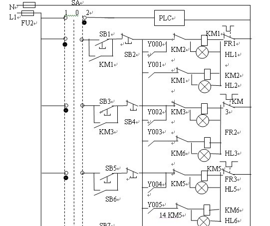 SA三檔轉換開關 在0位是停止工作 在1位是手動控制 在2位是PLC控制