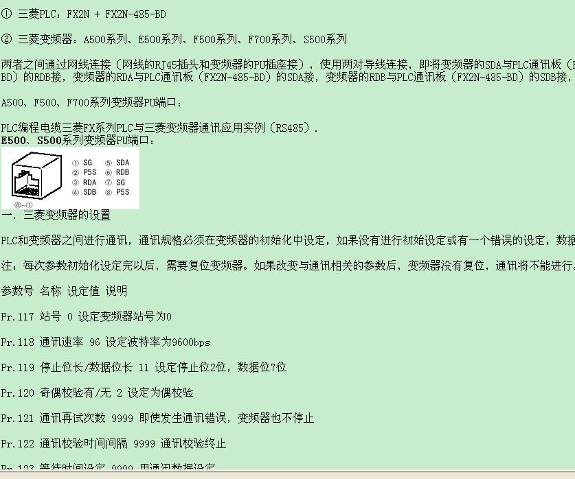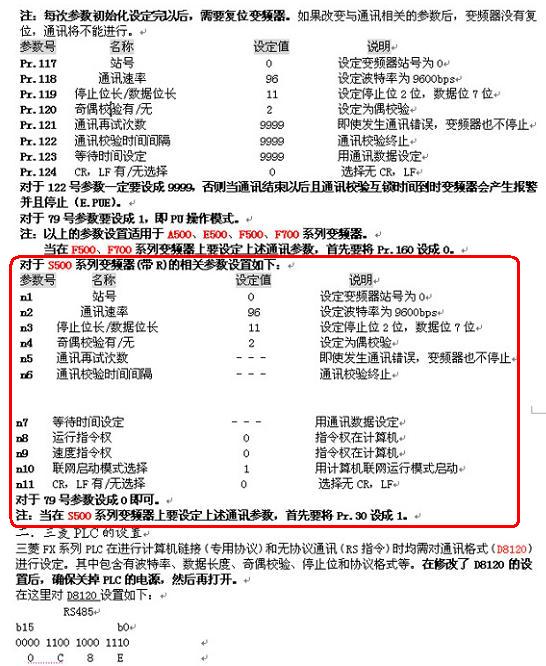 請問三菱變頻器S500可以和PLC通信嗎?其通訊地址怎么定義,通訊格式是怎樣的?說明書里沒有怎么介紹