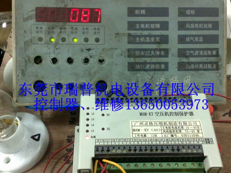 東莞橫瀝同行客戶送修一個凌格風空壓機MAM-KY(40)控制器(MAM-KY空壓機控制保護器),送修故障為空壓機開機后,自動關機。反復操作。故障現象反復。
