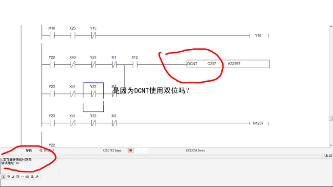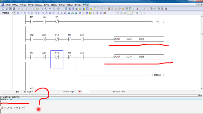 在軟件里是沒有錯誤提示的,就是一輸入到臺達60ES的編程時,就會在軟件下方有出錯提示。