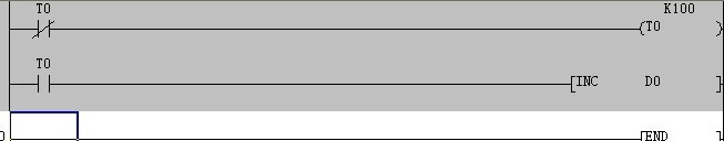 T0接通后,順序執行到下一句,T0的常開接點接通,使D0加1;