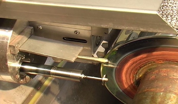 這是德國一個車圓輥機器上的測量裝置,測量方式是由一個伺服電機帶動此測量裝置移動,當測量裝置剛好接觸到工件時保存數據,然后退回。測量精度在0.005毫米左右。有人知道這是個什么東西嗎?先謝謝大家了。有沒有具體型號或者學名等等信息?圖片下面一個圓桿前面一個圓盤帶個針的是測量頭。