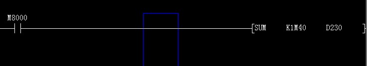 k1為一組,M40為首元件號(hào),4個(gè)為一組,即M40 M41 M42 M43,SUM是求置ON位總和指令,即M40-M43中有幾個(gè)置1,把個(gè)數(shù)放在Duidev30中