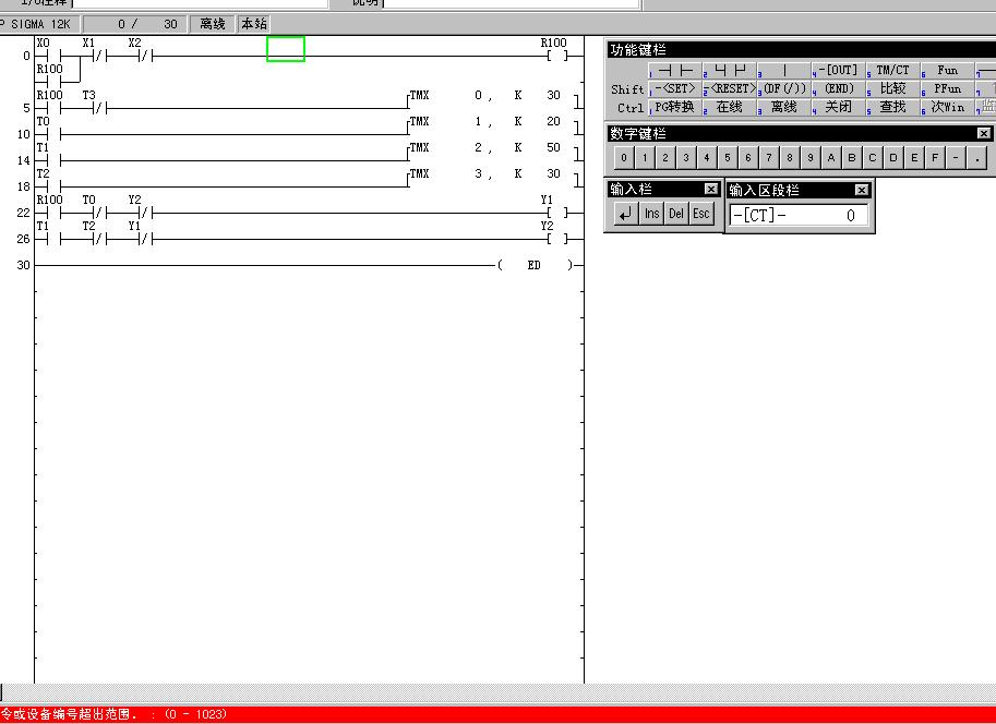 松下pLC軟件嗎? 看下幫助一般都會(huì)提示你什么操作的,很傻瓜的!你要輸入T 或C要帶上編號(hào)和設(shè)置值的吧!
