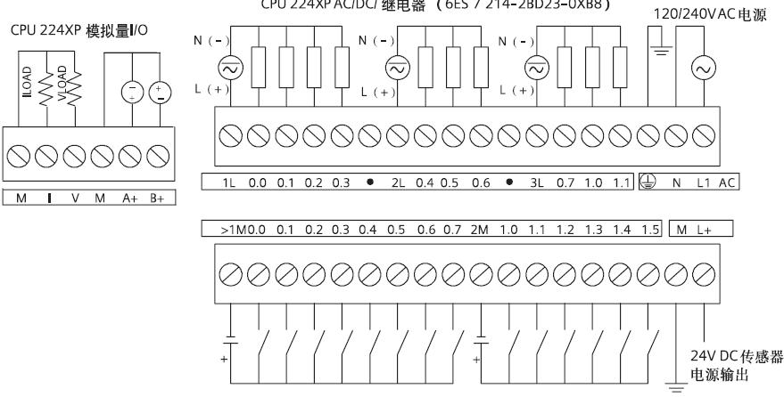 PLC224XP自帶的 模擬量的端子怎么連線。克麄兠總點的含義。