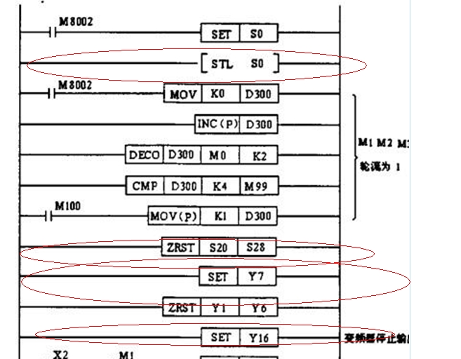 梯形圖是從下向下掃描的,如果條件都成立,執行上面的。