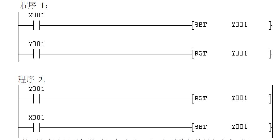 程序1按下去后Y1無輸出,程序2按下去后Y1有輸出。