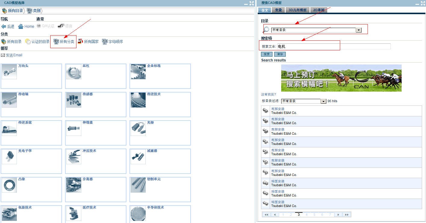 你可以點擊所有分類進行查找,也可以在網站右側的搜索文本框中輸入零件的名稱進行模型查找。