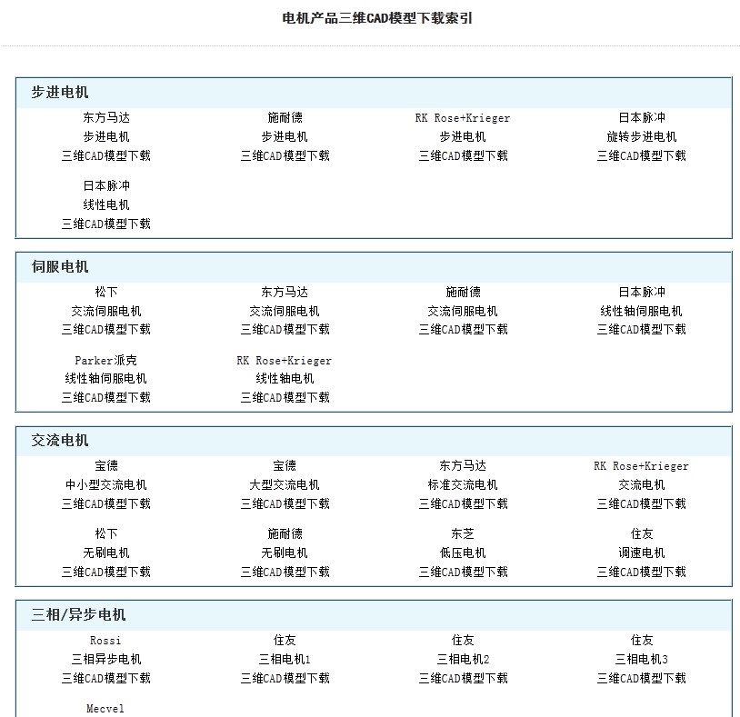 網站上主要是一些機械,建筑,電氣自動化方面的零部件模型,支持各主流CAD格式,Pro/E,UG, SolidWorks, SolidEdge, CATIA, Inventor等等