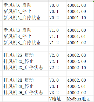 我用V的位地址轉出來的modbus地址,如圖所示。他這個控制不了實際的設備,而且狀態也不對,程序是用S7-200smart寫的,那個位地址是用那個計算器算出來的不知道是哪里出錯了,和實際狀態對應不上,但是v字地址轉出來的變量是對應得上的,希望大佬們幫我找找問題,謝謝啦!
