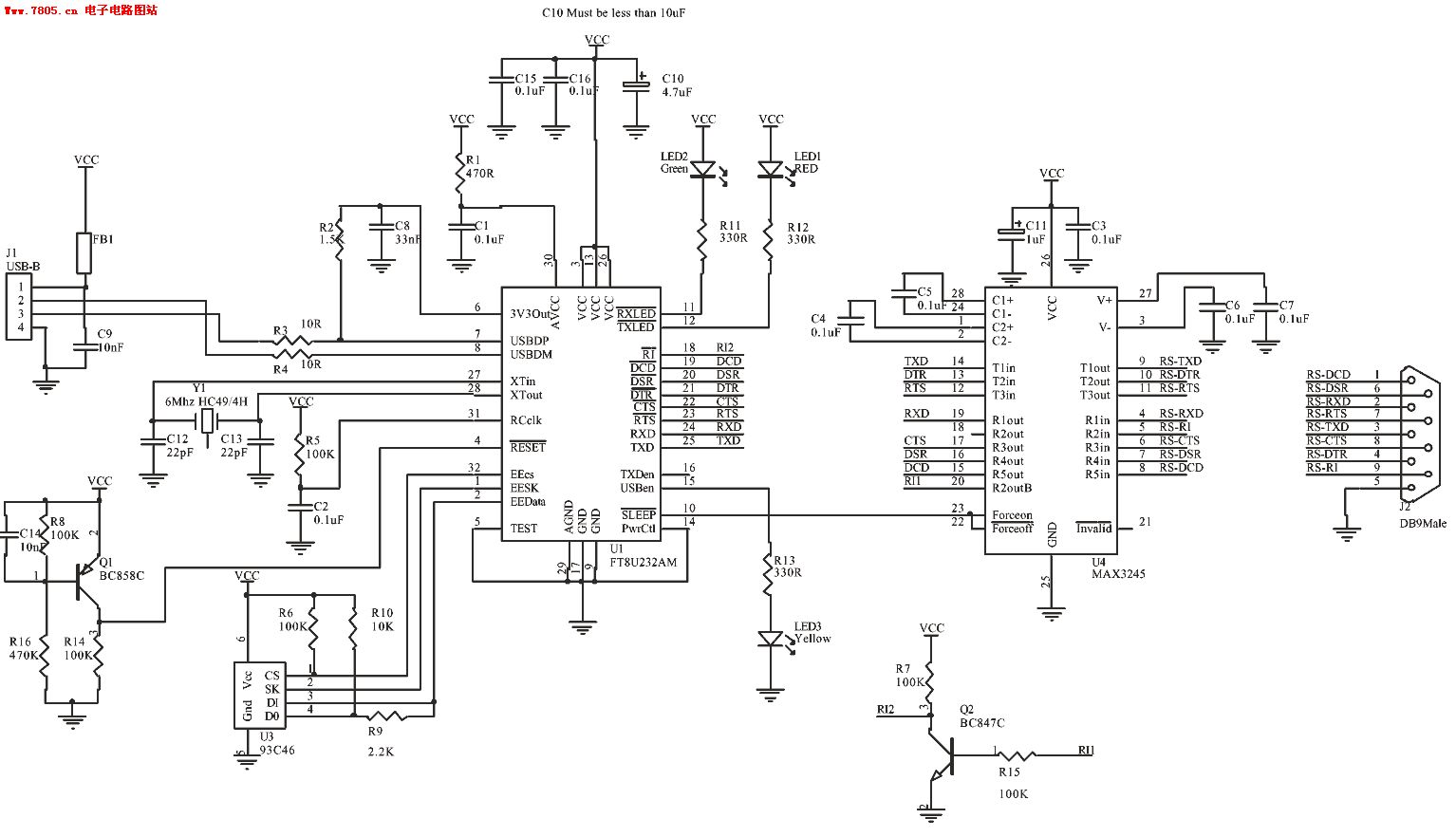 以下為USB轉(zhuǎn)RS232電纜圖紙,有需要的朋友請參考