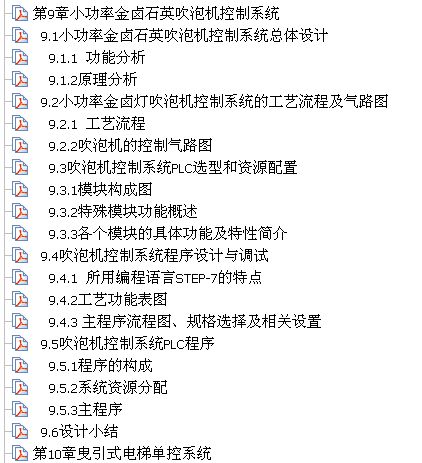 從總體設計、PLC的選型及配置、工藝流程和程序設計,開發PLC系統的整個過程。主要的例子有定位自動控制系統、水處理控制系統、鍋爐燃燒自動控制系統、啤酒發酵自動控制系統、織機自動控制系統、電梯自動控制系統等。相信對大家會很有幫助的。