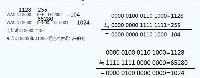 DT2000=1128,那么轉(zhuǎn)換為二進(jìn)制就是 0000 0100 0110 1000