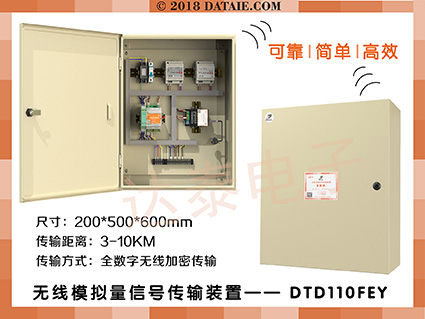 達泰1系無線模擬量傳輸裝置-DTD110FEY,可直接替代有線模擬量信號傳輸方式,實現4-20mA或0-5V電壓信號的點對點無線傳輸功能。無線裝置無需編程,運用全數字無線加密傳輸方式保證數據安全可靠,傳輸距離在3-10公里,后期無運行費用,配置防雨機箱,防護等級IP45。無線通訊裝置發射端能夠提供1-8路模擬信號輸入,可以直接連接變送器,傳感器,PLC等設備;接收端能夠提供1-8路模擬信號輸入,可以直接連接數顯表,DCS,PLC等設備,發射端與接收端成套使用。在使用時,外接220V電源并接入對應信號線即可實現模擬量信號的無線通訊。