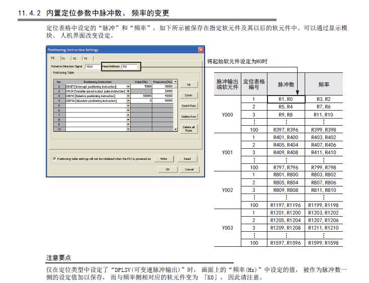 三菱plcfx3u中如果用表格設定定位  脈沖頻率(速度)在哪里設定?