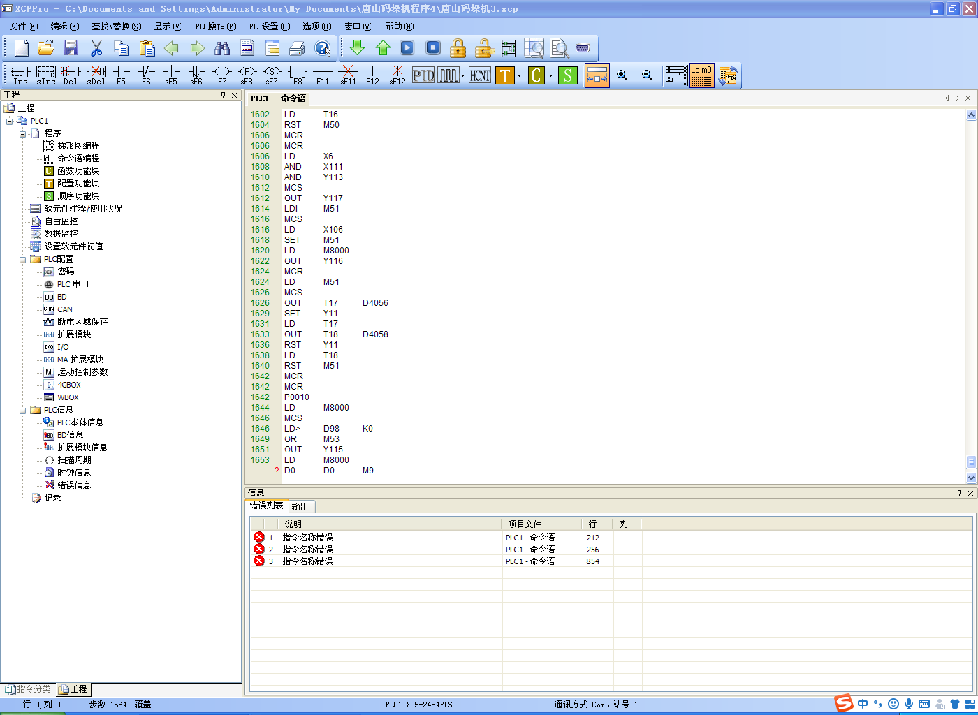 各位老師好!看這個圖,程序是一個框架碼垛機的,上載上來后有?D0 D0 M9這段語句,提示指令名稱錯誤。是咋回事哩?望哪位老師解答一下。