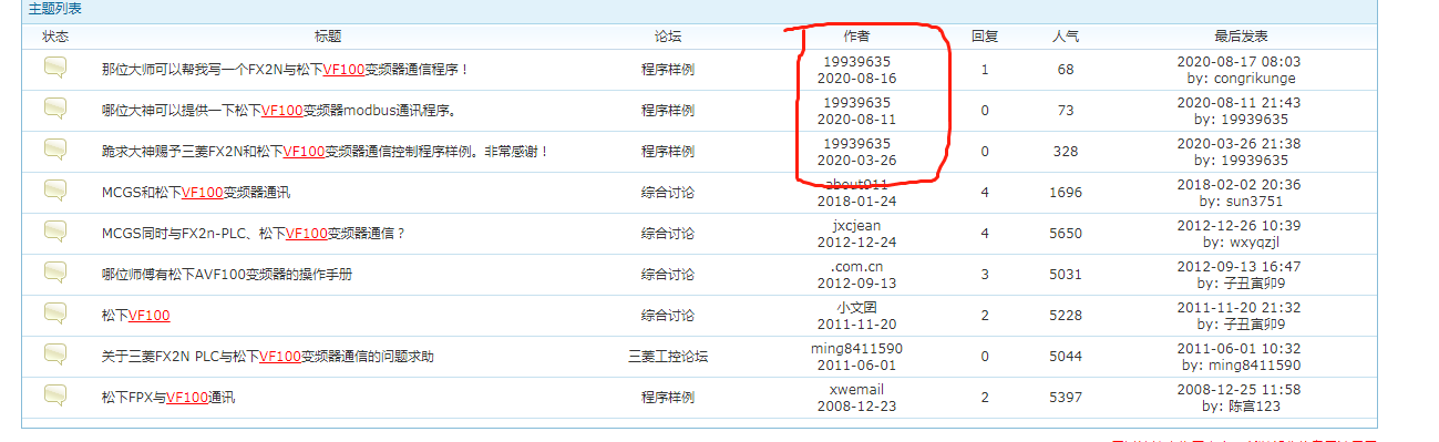 你好老師,你發(fā)的是松下系列的PLC,我需要的是三菱FX2NPLC和松下VF100變頻器的通信程序。