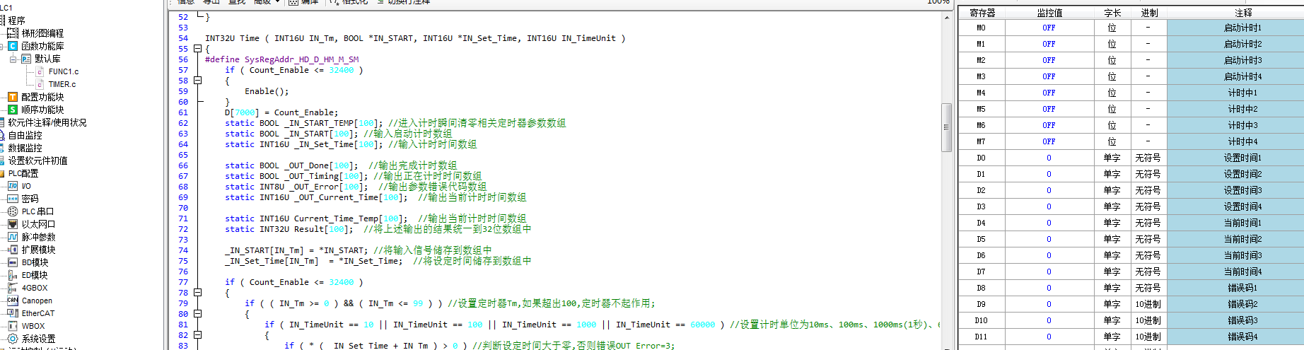 *IN_Set_Time為定時器設置時間,為16位整數,參數為指針類型,可以使用&D[0]、&D[1]、&D[2]等形式進行傳參或者自定義。