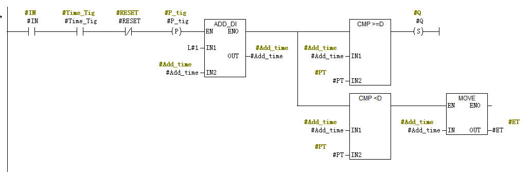 輸入變量IN用于定時器激活信號的輸入,RESET用于復(fù)位定時器,而PT用于設(shè)定需要定時的時間。timer_num用于將定時器編號傳入。
