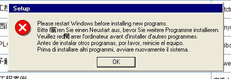 使用谷歌在線翻譯為:請重新啟動Windows,然后再安裝新的程序
