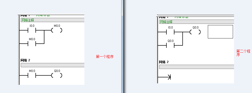 第一個程序與第二個程序分別下載后將模式開關打到run ,接通一下i0.0,Q0.0都有輸出。然后將模式開關打到stop,再將模式開關打到run ,但是第一個程序Q0.0還是輸出,第二個程序Q0.0就沒輸出了。為什么 ,我沒斷電,不要說什么斷電保持。這個問題我已經迷茫兩天了。前天編順序控制也是這樣。導致程序執行混亂。plc打到stop檔位后,難道m繼電器不會復位嗎?如果是三菱的打到stop后  在打到run,m就復位了!就不會有輸出了。我剛學西門子的。望高手指點。
