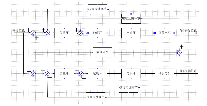 我這里的交叉耦合實際上是兩個軸的實際位置做差,然后反饋回控制器,對位置落后的軸做正補償,對位置提前的軸做負償。