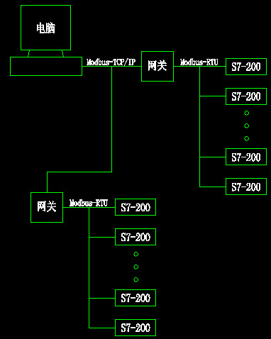 請(qǐng)教一個(gè)問題:采用S7-200 PLC改造了兩個(gè)車間的生產(chǎn)流水線(車間相距較遠(yuǎn),間距大約在1500米),每個(gè)車間有8個(gè)PLC,相互間是完全獨(dú)立工作,老板想通過電腦界面監(jiān)視每個(gè)PLC的運(yùn)行狀態(tài),必要時(shí)能進(jìn)行起停控制,請(qǐng)問用MODBUS—RTU主從站可以組態(tài)嗎,怎么個(gè)組態(tài)法,可不可以采用以下方法,見網(wǎng)絡(luò)拓?fù)鋱D(附件)?