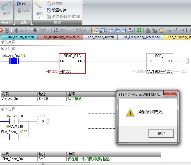 首先ST60是有時鐘功能的,程序進行到read指令就變紅進行不下去了,編寫程序時按照plc——設置時鐘,點設置時鐘提示“指定的時間無效”,因為程序里有個時間限制的子程序,所以時間必須對,怎么才能寫入程序?