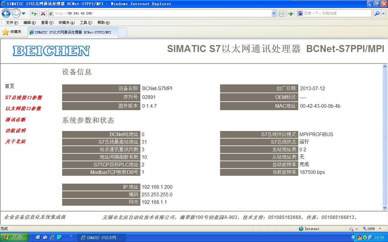 BCNet-S7產品的功能完全滿足以上需求,無錫北辰采用BCNet-S7已經完成了多家企業的生產管理系統,在這些系統中都有上百臺的BCNet-S7模塊在負責24小時實時采集設備數據并高速可靠的傳送到位于生產管理信息中心的服務器上供記錄和分析。