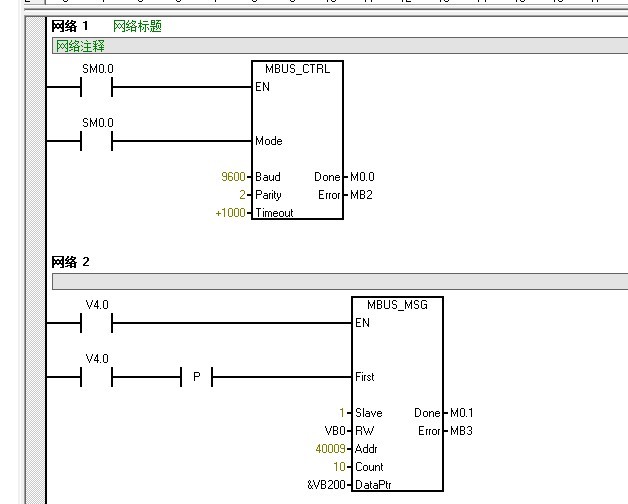 最近我在做這個通信,西門子程序與三菱變頻器通信成功,可以讀寫變頻器數據(PR0----PRxxx),監控輸出電流,電壓,頻率也可以,心里高興了一下,接下來讓人傷感的事發生了,看了變頻器說明書準備寫起動指令(VW200到40009)運行頻率(VW210到40014)VW200=1,VW210=5000,查看變頻器無動作。觀查西門子程序顯示錯誤提示103(從站不支持數據:該“地址”不被從站支持),我不知道哪里出錯了,接下來應該怎么做。有做過這通信的朋友請伸出你援助之手幫幫忙,謝謝。