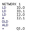 ,求高手指點,圖中的  LD  I0.1和LD  I2.0   A  I2.1進行邏輯或運算,然后再串聯后面的線圈輸出,但是前面的LD  I0.0和并聯部分再進行串聯卻未能在語句表中體現,請問這究竟是怎么一回事?