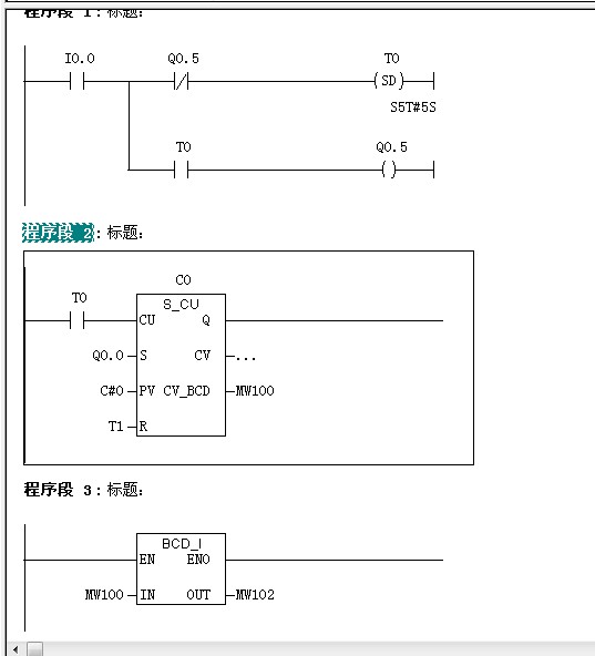 當(dāng)I0.0(啟用條件)滿(mǎn)足后定時(shí)器得電延時(shí)5秒后,Q0.5得電,同時(shí)你又把定時(shí)器給切斷了電源,這樣Q0.5始終不能得電了。如果你想用Q0.5做脈沖指示,也不能正常顯示,所以意義也沒(méi)有了。T0做5秒脈沖是可以的。