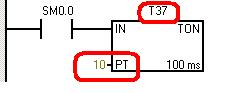 直接在定時(shí)器編號(hào)處輸入T37,然后在PT端輸入時(shí)間數(shù)值(0.1S單位)