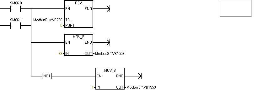 這段程序的意思是當前面二個條件滿足后執行自由通訊的接受,同時將vb1599置0。反之置1.