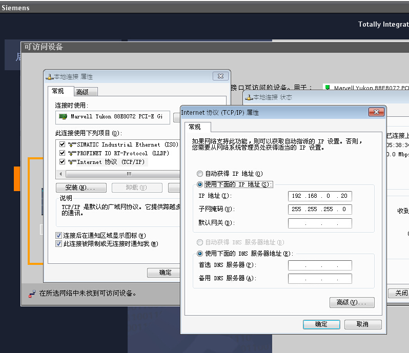 2.我手里還有個214-1AE30的PLC,軟件里有這個PLC,但是我用軟件搜索可訪問的設備時,一直搜不到PLC,這是怎么回事呢?我的電腦IP地址設置的是192.168.0.20,應該也是和PLC一個號段吧,怎么搜不到呢?已經確定網線肯定是好的。